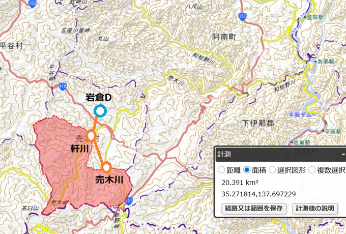 405.08m | 304.83m | 5.54m3/s[42.6] | 129.5km2 | 岩倉ダム |