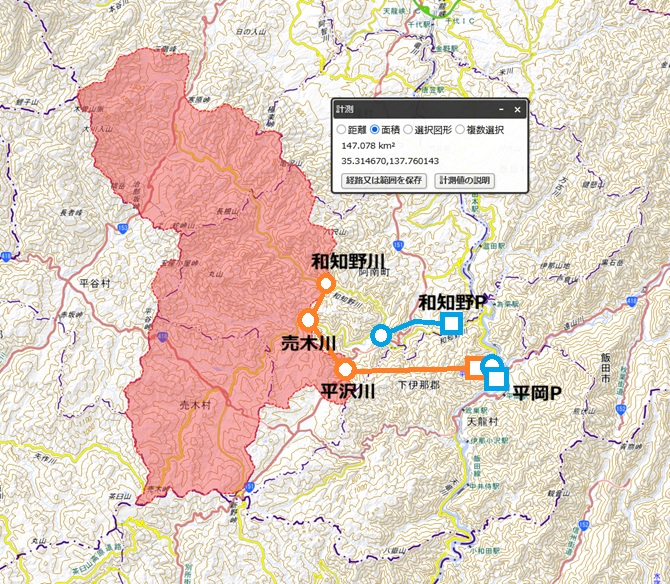 金谷堰堤[場 所] △ 流域面積:約11.5km2 取水量:0.53m3/s[0.46] 斜面の中腹を走る道路から堰堤の取水設備遠望 ![]() 名前は鈴ヶ沢では無く金谷(かなや)堰堤と云うらしい。 ![]() 金谷はこ の辺の地名である。 現地訪問から半年も経ってから纏めているなので何処に立ってたのか覚えてないけど激写に成功してる♪ ![]() ここを奥まで辿ると五座小屋峠を経てR153の治部坂峠の平谷側の靭に出る。天竜川の支流域と 矢作川の支流域が最奥部で隣り合わせとなっている場所であ る。 自治体の境界が峠よりも和知野流域寄りに平谷村の村域がでっぱっている。 |