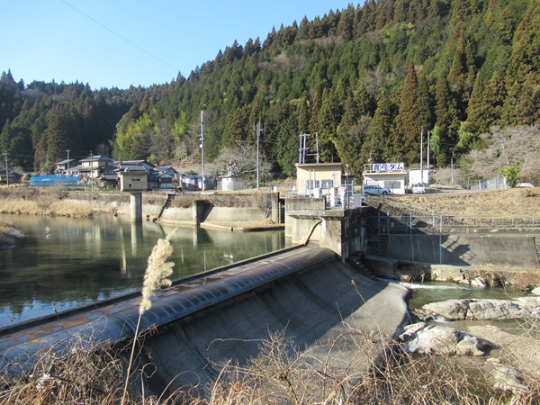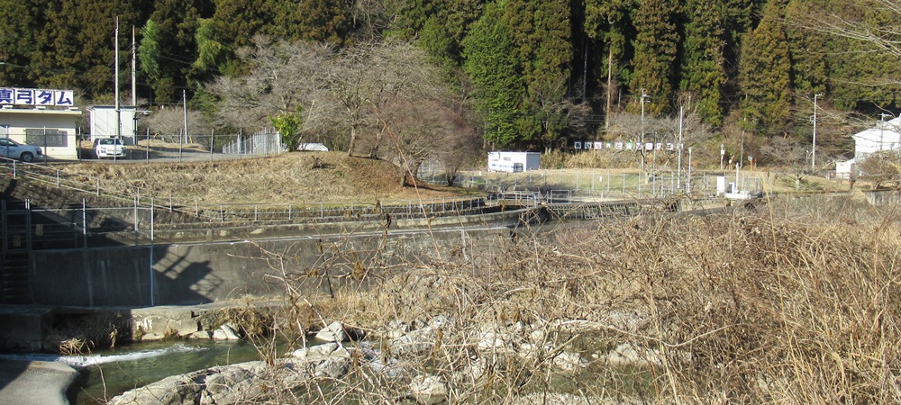 ▲ 名倉川では真弓発電所が取水している他,支流の黒田川には黒田発電所があり,更に黒田川上流には奥矢作 第一発電所の上池の黒田ダムが建設されている。 真弓発電所は矢作川沿いに立地しているが取水は名倉川である。黒田川との出合付近にあっ て取水量を確保している様だ。CA=76.4km2でQ= 3.9m3/s,指数0.51と真弓発電所の水量・出力は倍ぐらいには出来そうである。 真弓発電所の取水先は名倉川,放水先は矢作川で,発電所があるのは川手町,ちょい横は押山町,堰堤があるのは桑原町でお向かいは稲武町…と「真弓」がどこ から由来してるのか全く判らない。 昔は経営者がもっと威張ってて,浅野総一郎の奥さんの作(さく)の雅号「佐久」より命名された佐久発電所や福沢桃介に由来する木曽の桃山発電所みたいに 地名無関係に名前決めちゃったやつかも。大井ダム建設には福沢の愛人の芸妓 上がりの女優,貞奴が大活躍したみたいだし,どっかの真弓ちゃんの名前から来てても全然不思議ではない。矢作水力の記念すべき第一号水利権の案件 である。 真弓ダム(桑原堰堤)[場 所][DB] ▲ 目的;発電(真弓発電所) 名倉川(黒田川合流部)489.28m 流域面積:75.5km2 取水量:3.90m3/s? 貯留量:なし?(取水堰) 堤高/堤頂長 3.3m/38.84m 設備:土砂吐(スライドゲート1門) いつか行ったんだけどいつ行ったのか失念して未だ写真が見つかっていない。なんなら再訪した気もするんだけどその写真も見つかっていない…→発見, 23.12に行っていた(2年前)。やっと掲載。この日は伊勢神トンネル(13時40頃)から名倉川に進入,真弓堰堤見学(14時頃)に後に下村発電所を 遠望(14時15分)しつつ中津川の王子エフテックの水発(15時頃到着),更に神坂から男埵川(15時45分頃)を見学して いる。どこに向かってるか殆ど判らないし,何時見た案件か忘れてしまう訳だが,どうも帰省の途中に見てない場所を色々組み込んだ様だ。錯乱気味の経路でも ゆっくりと掛川に近づいているw 真弓と下村が意外に近い。。 冬枯れの真弓ダム。 23.12地図からも確認出来る彎曲して山に垂直に相対してトンネルで突っ込んでいく導水路 ![]() 冬(年末)だけど結構な水量取れてる♪ ![]() 冬枯れの名倉川,取水後 ![]() 取水量を増やしたいと思ってる[→構想案]んだけど,まあ上流で取水したら真弓堰堤の時点でこんなんになってるよ ねぇ。。