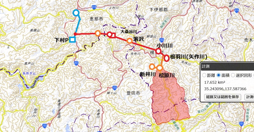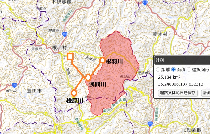 ▲ 富永ダムがある以外に何もない地味な矢作川の支流。 流域も狭い。流域なら直ぐ隣の段戸川にポテンシャルを感じる。 特に段戸川[→本篇]は設楽町の方から流れてくるのでそこそこ流域ある。導水出来 れば混合揚水にできそうなもんだけど??