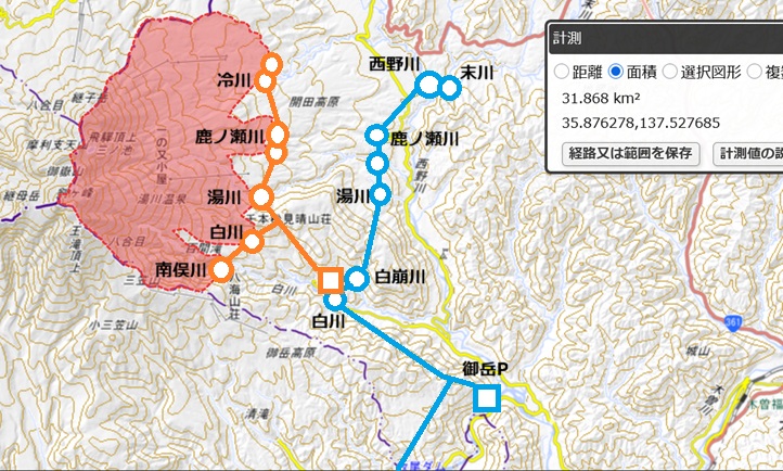 御岳取水流域も導水用にフルカウントしたもの |