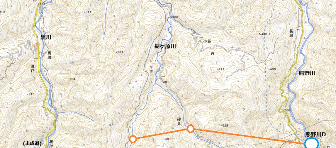 富山県道187号荒屋敷月岡町線・未成区間 この黒川には治水ダムを建設する計画もあったが中止となっている。 丹生川ダムの様にここも県道が建設途中で抛棄されている。23.5に富山県を来訪したが有峰林道がまさかの冬季通行止めで主要目的地の二つの内の一つが 吹っ飛ぶという参事を経験したのだがその時に空いた時間で寄ってきた。 未利用で放置されてもったいなかった。。 入口付近(マウスオーバーで拡大)。 23.5トンネル 23.5何故か行き止まりの写真が撮れてなかった。。その手前付近。行き止まりから横へ抜ける道は地 理院では二重線なのにとてもそんな良い感じでは無かった。 ![]() 今,こ こら[すとびゅう]でEL.315m [地理院]である。 大清水付近で黒川は三つに岐れる。川の 名前地図に拠ると何れも名称不明とつれない感じなので勝手に名前を付けてみた。 黒川は大双嶺という地名もあって大双嶺沢と迷ったが,大双嶺はもっと山の中で一寸ズレる様 だ。。 大双嶺の「東南部の峠・蛇越(じゃごえ)を越す と、熊野(くまの)川に降り河内(→後で到達するここ)に通じている[aikis]」 と のことで地名が中途半端な場所に書かれてて迷うがこ ちらの山道沿いでこ の沢沿いの聚落ではないらしい。 ![]() 千長原[aikis]も 大双嶺[aikis]も 上流の廃村名である。川の名前地図には載るが,既に地理院には地名の記載はなし。此処らも普通に訪問しているaikisさん,流石としか云いようが無いが >大双嶺の分岐を過ぎしばらく進むともうひとつ分岐があるが、ここが集落への登り口。往時は四輪車が通れたようだが、現在は荒廃して車輛の通行はで きない。 とあるが,もうひとつの分岐が何処か不明だが,この辺が川の名前地図に載ってる千 長原である。 この道は川の名前地図に拠ると大規模林道大山・福光線と 云うらしい。この辺で直ぐ車 道としては途 切れてるっぽい。す とびゅうももっと手前で直ぐに引き返している。 どうやってあんな遠く(大山は岩峅寺の立山橋挟んで西側)迄伸ばすねんw 無駄に林道建設しまくっていた頃の名残で行き止まりの林道が残さ れたようである。 税金の無駄遣い腹立たしい。 治水兼ねて導水するとこんな感じ。流域は10.1km2程。導水距離は千長原沢から3.7km程。 ![]() これで今は尖頭需要用に特化してるっぽい熊野川発電所の稼働率をもうちと上げられるかな?? 楜ヶ原川は検討省略。そっちは熊野川発電所に直接送るぐらいで良いかも。 またこの先の桧峠は長棟川最奥部への車道と成ってゐるがゲートで封鎖されているようである。 折角ここまで来たのだからゲートや大山福光線の,末端迄行っておけば良かった(変なフラグ立った?!) |