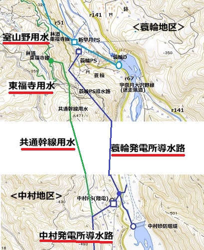 ※※:大崎野・大浦の平均で供給量が決まる場合 ここでは室山野・東福寺 野への1.5m3/s程度の平時の潅漑取水があると仮定する。 |