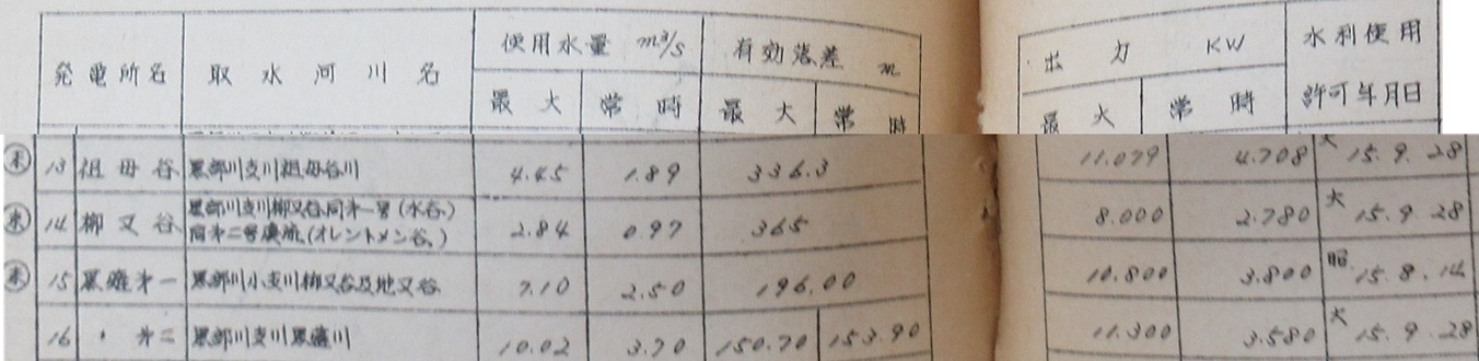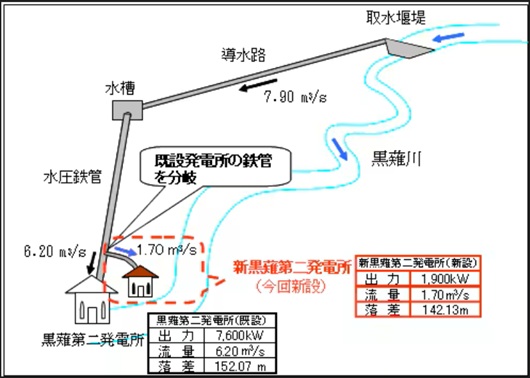 | 〜黒薙川〜 ▲ 冒頭の系統図にも独立して書かれてた 様に重要な支流の黒薙川である。 二見ダム ▲ 河川 黒部川水系黒薙川 目的/型式 P/コンクリート 堤高/堤頂長 m/ m 流域面積/湛水面積 総貯水容量/有効貯水容量 ダム事業者 関西電力(株) 着手/竣工 / (柳河原発電所運開は1927年2月運開(日本電力)) 取水:黒薙川 送水:新柳河原発電所343.0m(→宇奈月ダム) 黒薙第二発電所[DB] [関 電] ▲ 運開:1947.12/現行施設運開:1977.02 水路式・流込式 出力:7,600kW 常時:4,200kW 水量:6.20m3/s 落差:152.55m 導水路:総延長 3,188.0m 無圧トンネル、暗渠 口径2.20m 水圧鉄管 262.42m 水車:横軸フランシス 1台 総出力(定格)8,000kW 面積:104.1km2 取水:黒薙川[北又堰堤]、猪頭谷川510.00m 放水:黒薙川[二見堰堤]348.55m 新黒薙第二発電所[DB] [関 電] ▲ 運開:2012.12 流込式 出力:1,900kW 発電量:約1,200万kWh/年 水量:1.70m3/s 落差:142.13m 面積:km2 水車:ターゴインパルス 取水:黒薙川[北又堰堤]、猪 頭谷川510.00m 放水:黒薙川二見堰堤] 黒薙第二の水圧鉄管から途中分岐 ![]() 北又堰堤[DB] [場 所][関 電] ▲ 河川 黒部川水系黒薙川 目的/型式 P/コンクリート 堤高/堤頂長 4.70m/ 33.00m 流域面積/湛水面積 総貯水容量/有効貯水容量 ダム事業者 関西電力(株) 制水門: スライド・ゲート 1門 径間(口径)ラ高さ 4.50mラ1.80-2.90m 着手/竣工 / 取水:黒薙川・北又谷 送水:黒薙第二発電所・新黒薙第二発電所7.90m3/s 北陸電力(株) 北又ダム発電所[陸電][電力土木] ダム式・河川維持流量型 出力:130kW 発電量:900MWh/年 最大取水量1.02 m3/s 最大有効落差19.57 m 既設放流バルブの流用 取水:北又谷[北又ダム] 放水:北又谷