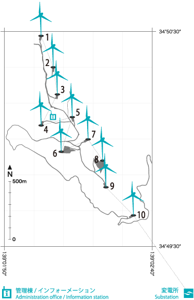 <伊豆半島地域における電気の流れのイメージ> (資料)東京電力㈱提供配電線に接続された発電設備の電力は、配電用変電所の同一バンク内に接続されている負荷により消費される。これは、電気事故等を回避するために、配電用変 電所のバンク単位で逆潮流が生じないようにすることが系統連携技術要件ガイドライン(資源エネルギー庁)で定められていることによる。イメージとしては、 地域で発電した電気は、地域内で使用されることになる。具体的には、家庭の太陽光発電施設で発電された電気は、配電用変電所の同一バンクに接続された配電 線網の中で消費されている。 東伊豆町営風車の設備容量は3基で 1,800kW であるが、ここで発電された電気は、6,000Ⅴの配電線に流されており、この配電線の範囲内、具体的には東伊豆町稲取地区に電気を供給している。平成 22 年度の東伊豆町営風車の発電量は、390 万 kWh で、一般家庭の約 1,150 軒分を賄っている。これは、東伊豆町の一般家庭の約 20%である。 |