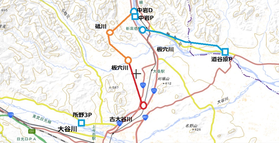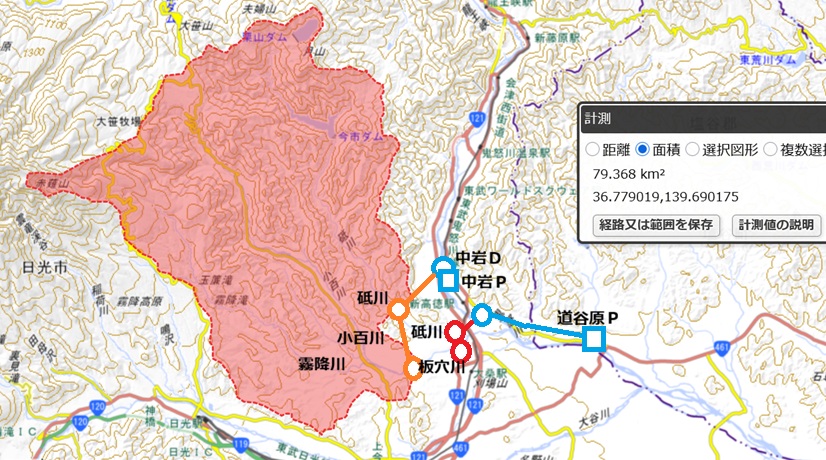 中岩ダム導水路側から更に2.15km延ばすと道谷原発電所が既に取水している古大谷川で ある。古大谷川の流域に中禅寺湖を含む膨大な大谷川の流域は道谷原発電所(CA=698.5km2)との流域と中岩発電所の流域(CA=697km2)を 比較してもないのでカウントされてない様子だが(そもそも1.5km2しか違うと云うのも変であるから古大谷川の流域を道谷原発電所の諸元も含んで記載さ れてないらしい),この辺で大谷川から古大谷川へ取水は可能っぽい。 ここまでやればOKであるw ![]() 道谷原の使用水量も35m3/s程度には上げたい所である。 古大谷川の川筋が今でも20m3/s位流せられるのかどうなのかが課題。取水点はこんな感じ。よく判らないので流れが見える場所を探すとこんな感じ。古大谷区間の整備も必要で全8km程の工程となりそうだけどまあそれでもペイはしそう。とはいえささやかに小技を効かせて発電量上げるのが導水の基本なのにトリックスター過ぎるかw |