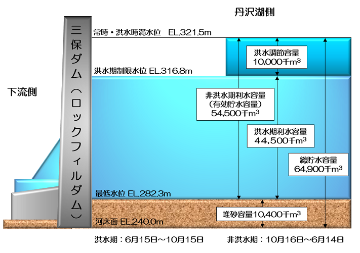 ▲ 一応子会社ではあるが別会社の東京電力RP(株)と東京発電(株)の間で連系が巧く行ってないのでは無い だろうか? 嵐発電所を12m3/s利用出来るようにする(今2台の水車を3台にすれば恰度良い)と,同じ電力を確保するに田野入で放流する12m3/s時間を短く出 来る。 今迄は12m3/sで13,100kWだったのが15,600kWも発電出来るので必要な電力に対して水量を83%で済む事になる。詰まり同じ水量で発電 時間を1.2倍近くに倍増出来ることに成る。 勿論これは8.35m3/s以上で動かしている場合の話しなので資産効率はそれ程良くないのかも知れないけど水力の調整力は魅力である。 また河内川系統の12m3/sと峰以上の鮎沢川系統の16m3/sが合わさって山北以下の酒匂川系統20m3/sを構成する。 多少嵐発電 所の出力を犠牲にしても良いから此処の合流点で川の水位を上げて調整池を設けてバッファー(谷峨堰堤!?)を形成したい。 両系統の調整も出来るというか流込の鮎沢系統の水量を酒匂川以下の発電所が調整出来る様になる。特に連続する山北・内山が10,900kWの調整力を持つ 事になるなど効果はでかい筈。 勿論,嵐・田ノ入の常時出力が0kWと云う事で水は絞りに絞ってゐる様である。水量を確保していきたい。 東京電力RP(株) 嵐発電所[水力] ▲ 神奈川県足柄上郡山北町湯触 運開:1920.8[富士瓦斯紡績(株)?] 水路式・流込式 認可最大出力:5,700kW→ 8,200kW[+2.5MW] 常時出力: 0kW 最大使用水量:8.35m3/s→12m3/s 有効落差:83.83m 水車:横軸フランシス水車×2台 総出力6000kW 導水路:延長4393.9m 流域面積:158.5平方キロメートル 取水:河内川[田ノ入発電所(12.0m3/s・ 241.25m)]240.21m 放水:酒匂川[山北発電所(20.9m3/s・ 153.40m)]154.92m 東京発電(株) 田ノ入発電所[水 力] ▲ 所在地:神 奈川県足柄上郡山北町神尾田 運開: 1978.4 ダム式・貯水池式 認可最大出力:7,400kW 常時出力: 0kW 最大使用水量:12.00m3/s 有効落差:71.871m 水車:立軸フランシス水車 出力7400kW×1台 水圧鉄管:延長133.14m×1条 放水路:総延長101.3m 流域面積:158.5平方キロメートル 取水:河内川[三保ダム(落 合発電所)]316.80m(三保ダム洪水期制限水位) 放水:河内川[峰発電所]241.25m 三保(みほ)ダム[ 旧名:酒匂(さかわ)ダム][便覧][神奈川 県] ▲ 河川 酒匂川水系河内川 目的/型式 FWP/ロックフィル 堤高/堤頂長/堤体積 95m/587.7m/5816千m3 流域面積/湛水面積 158.5km2 ( 全て直接流域 ) /218ha 総貯水容量/有効貯水容量 64900千m3/54500千m3 常時満水位 標高321.5メートル(→容量図参照)/利 用水深 39.2メートル/洪水流量:800m3/s ダム事業者 神奈川県企業庁 着手/竣工 1969/1978 容量図 △ 出典:神奈川
