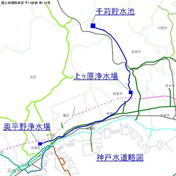 | ~羽束川~ 千苅(せんがり)ダム[便覧] ▲ 河川 武庫川水系羽束川 目的 W[神戸市水道] 堤高 42.4m 流域面積/湛水面積 94.5km2 ( 全て直接流域 ) /112ha 総貯水容量/有効貯水容量 1,171.7万m3/1,161.2万m3 ダム事業者 神戸市 着手/竣工 1914/1919 wikiによると上ヶ原浄水場を経由して神戸市内へ送られるとのこと。 但し現在では千刈の水は北区を中心に配水さてて神戸の水の3/4は阪神水道企業団の淀川水系の水だ そうな。 出典:神戸市水道局神奈川県が水源を相模川に持ってて,首都圏が利根川頼みで不安定な中,水不足に関して最強なのに,神戸市は武庫川に水源を持ってるけどそれ程 でもないようだ。