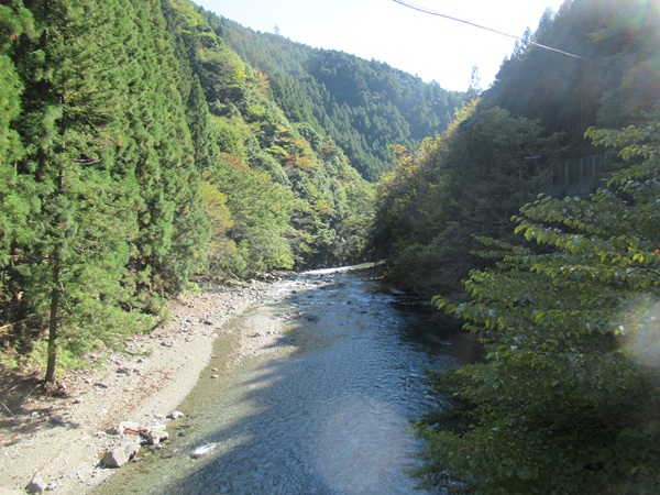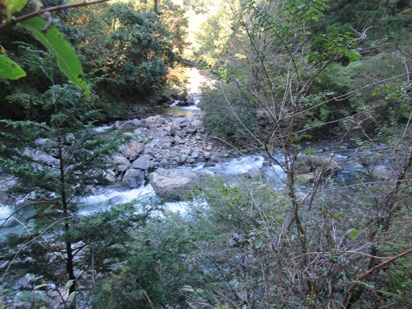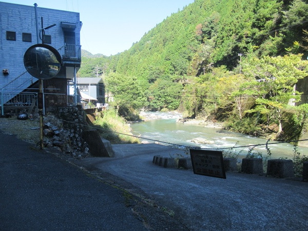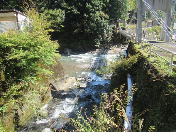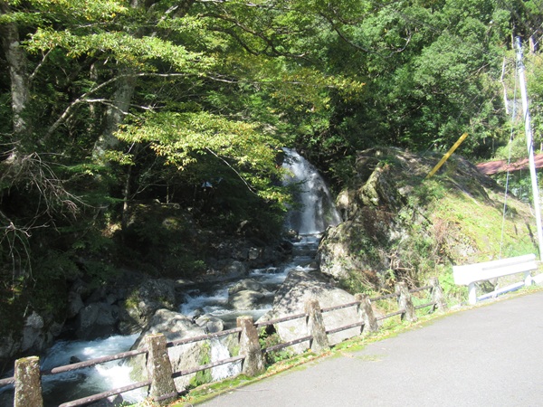 | 〜泉谷〜 吊り橋のすぐ脇で北山川に流れ込む泉谷。道のすぐ脇に滝が。地図に書いてある白滝なのか? ![]() |
