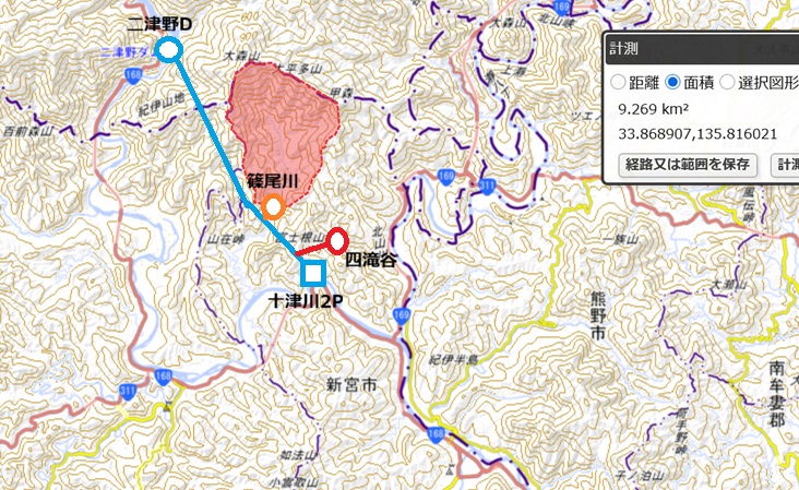 両発電所以下の未利用領域を熊野川と勝手に呼ぶことにして熊野川の電源開発を構想する。