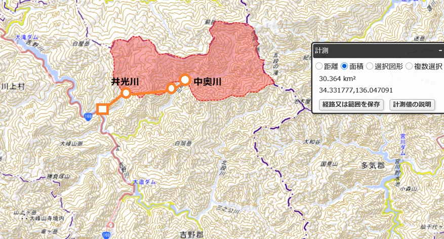 | 大滝ダム[便覧] | 7,600万m3 | FNWIP | EL321.00m | 258km2 |