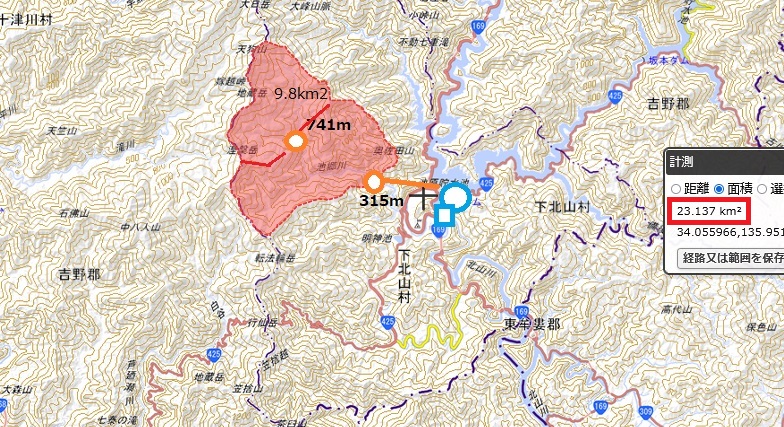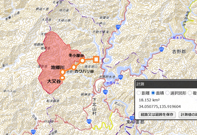 大峰山脈の周辺は池原ダムと風屋ダムに挟まれている。まさに