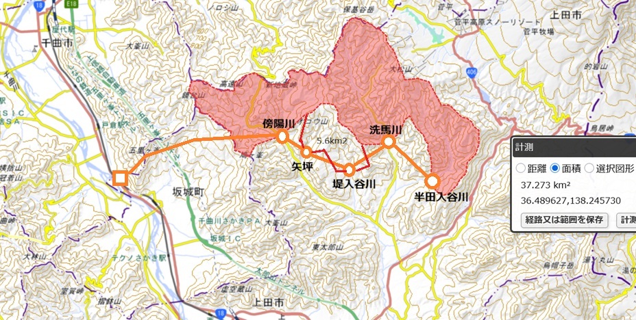 (洗馬川合流EL.622m) ここらで取水して上田の西側で発電してみるゾ。 洗馬川上流では別に流し込む(此処に流し込む可能性も当然有り)として計算してみる。 ![]() [私案]上田発電所 出力:9,600kW[+9.6MW] 水量:5.5m3/s 落差:210m 流域:51.1(独自)+81.7(横沢2P以遠)=132.8km2(菅平ダム37.4km2・それ以外) 取水:洗馬川EL.622m 放水:信濃川EL.408m 特に取水量で無理もしてないけどなかなかの規模感である。 仕切り直してみる。 ![]() [私案]奥真田発電所 ▲ 出力:14,400kW/11,000kW/16,600kW[+16.6MW] 水量:3.8m3/s/2.9m3/s/4.4m3/s[+0.6m3/s] 落差:445m 導水:15.6km(半田入谷川)[0.92]/13.0km(洗馬川)[0.84]/16.4km[+0.8km](堤入谷・矢坪)[1.01] 流域:37.2km2/28.26km2/+5.6km2 取水:傍 陽川(鳴尾沢出合)・(矢 坪・堤 入谷川)・洗 馬川・半 田入谷川835m 放水:千 曲川(坂城千曲境)380m ちょい低い洗馬川に堰を設けて導水距離短縮と流域拡大と調整力の確保を狙いたい。 |