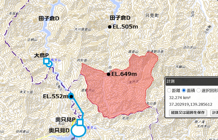 | 西 の沢 | 1.05km | 32.0km2 |