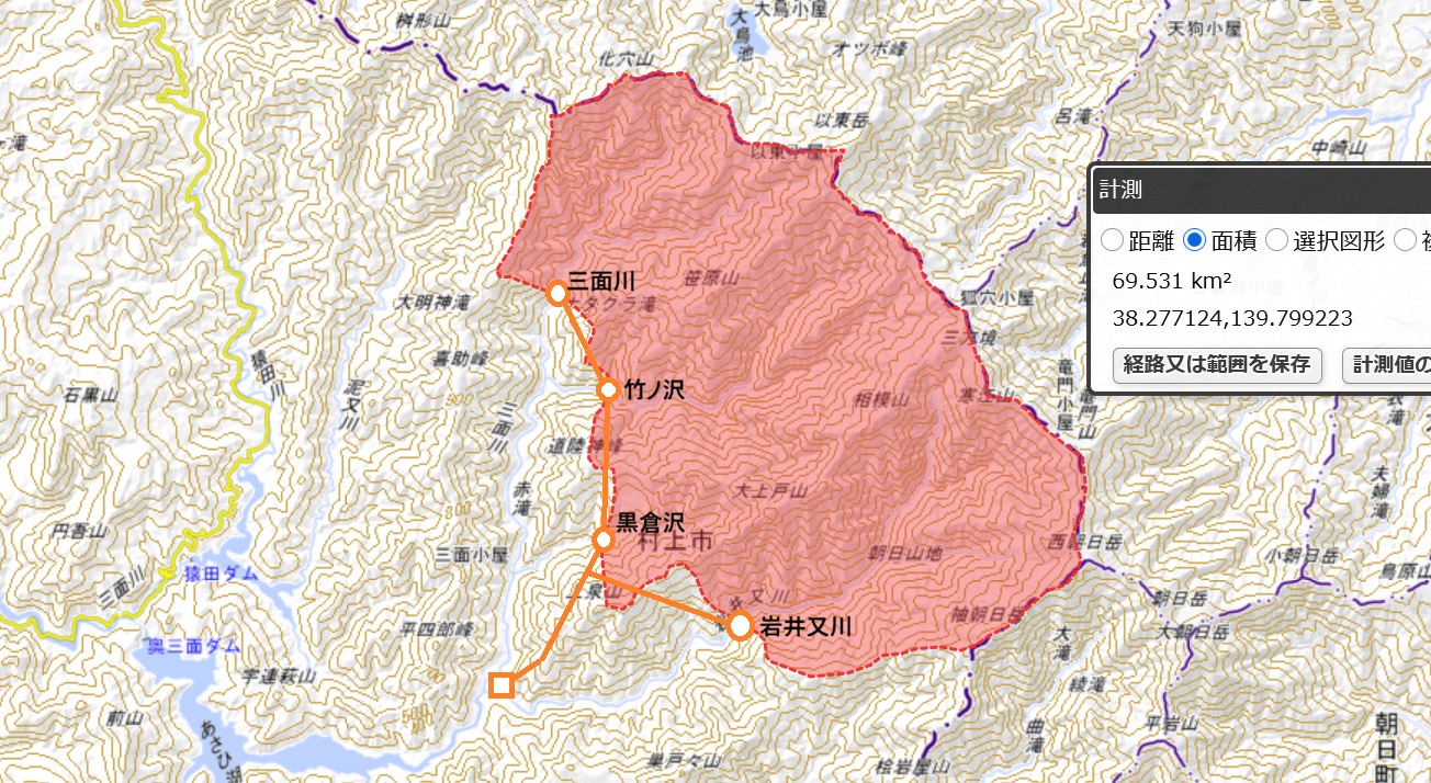 新潟県企業局 猿田発電所[水力] [新 潟県][DB] ▲ 昭和30(1955)年12月:運用開始 ダム水路式・調整池式 認可最大出力:21,800kW 常時出力: 1,800kW[8.25%] 最大使用水量:34.0m3/s 常時使用水量:4.6m3/s 有効落差:77.09m 水車:立軸フランシス水車×2台 総出力21800kW 導水路:総延長2177.4m 流域面積:88.6平方キロメートル 取水:猿田川[猿田ダム]200.00m 放水:三面川[三面ダム]118.50m 面積は僅かだが6.66km2の流域から3.3kmの導水で猿田発電所に送水出来て発電量の足しになるかも。 ![]() |