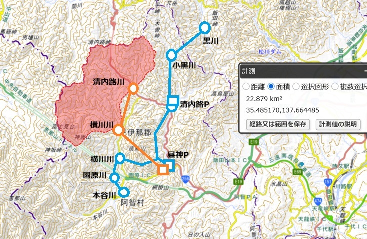 口全七箇所調査】 公文書館で確認してきた。1937(S12)に矢作水力(株)が工事申請した時の もののようだ。黒川とその近くのクルミ沢と本谷川の3箇所だった様だ。 ![]() 黒川は4.42m3/s,本川は3.33m3/s,クルミ沢は0.12m3/s(補なんとか=下より補給っぽい)で結局黒川と本川の和が全体の使用水量 7.75m3/s となっている。この時の数値からどの段階かは不明だが減らされた様だ。特に本谷は現行で1.92m3/sしかない(伏線)。[→可能性とな り得る事例後からに出てくる。せっかちな方はこちらからどうぞw] 更に1970年頃の文書だとこんな感じ。野田の沢・夜烏川・園原川・横川が加わってい る。この時は,「使用水量は最大一秒時間七.四〇〇立法米以内,うち常時使用水量は三.三〇立法米とす.たゞし流木,かんがい,飲用,製材用水車ならびに 魚族の棲息遡上に必要な水量は,これを放流し,支障のないようにしなれればならない.」となっている。製材用水車なんてのが当時はまだあったらしい。 ![]() 取水口 黒川 長野県 下伊那郡 清内路村 字 弥八 4.164m3/s以内 クルミ沢 仝(おなじ) 字 クルミカ島山 0.03m3/s以内(補給用) 野田の沢 仝 字 野田山 0.08m3/s以内(補給用) 本谷川 仝 阿知村 字 濃間下平 1.92m3/s以内 夜烏川 仝 字 夜烏山 0.06m3/s以内(補給用) 園原川 仝 字 大山道上 0.365m3/s以内 横川 仝 字 サブコヤ 0.96m3/s以内 補給とか補水とか勝手に呼んでたけどその取水口がなくても他の取水口で最大取水すれば発電所の最大使用水量を満たすことの出来る補助的な取水口の存在には 気付いていたけど,行政も(補給用)と註記していて一応それが正式な位置づけなのかな? また日本発送電時代の資料も付いててその時には既にこの7箇所が揃っていたので矢作水力を引き継いだ日本発送電が戦時中の発電増強の一環として取水口を増 やしたものらしい。 |