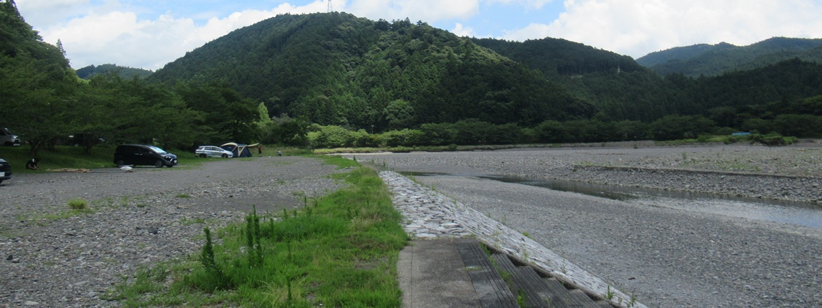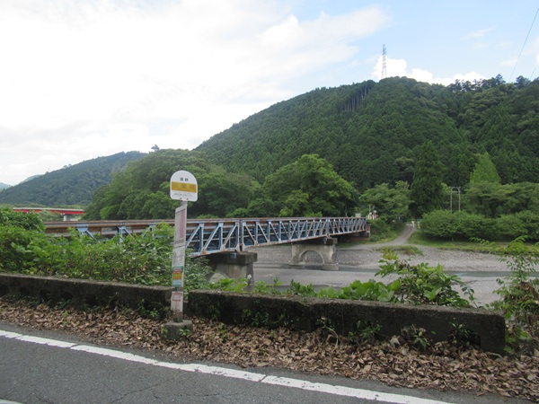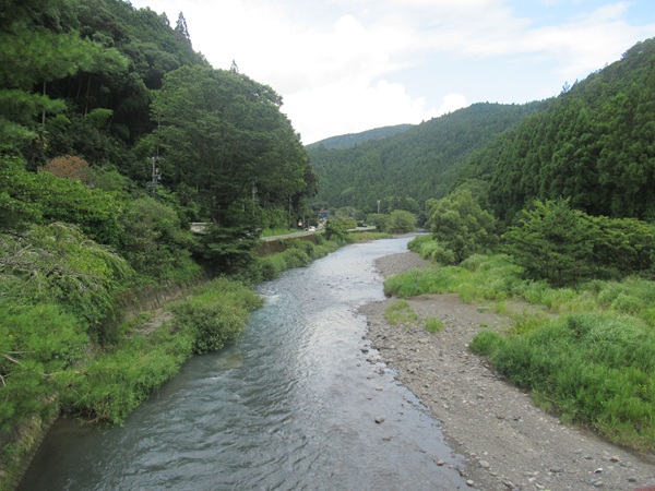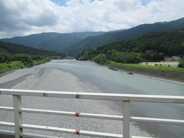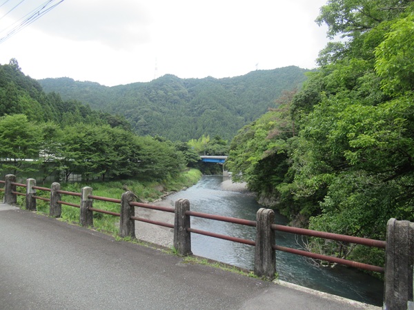 〜熊切川〜 旧道の古い橋の上から下流と上流を望む。気田川との合流点は青い新橋の向こう側である。 ![]() |