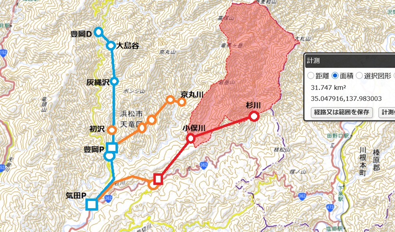 28.3km2:気田Pの熊切川からの取水分